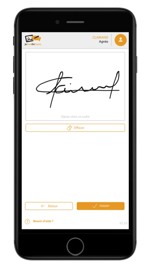Une fois la balise détectée, l’application vous autorise à émarger via le pad de signature prévu à cet effet.