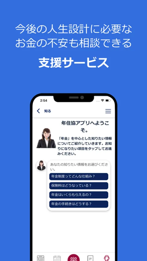 また、年金制度について調べたり、専門家によるサポートサービスも提供しています。