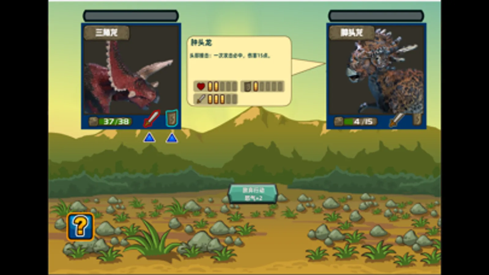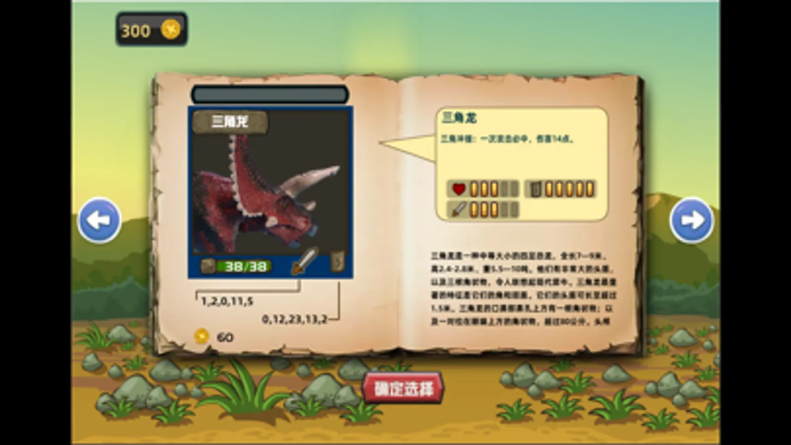 这是一款卡牌类策略游戏,一共十关,需要玩家连续打败十只恐龙来赢得胜利。玩家每回合要设计好自己所带的道具来准备开始征途。