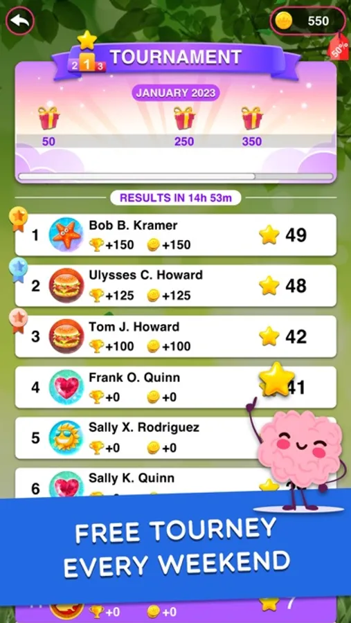 - FREE TOURNAMENTS. Find every word to score a maximum of stars every weekend. Earn your spot on the highest places of the rankings and get rewards.