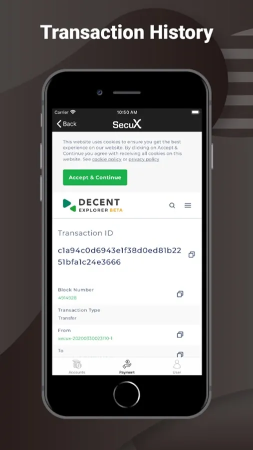 3. See payment history and transaction ledger from the blockchain at a glance.