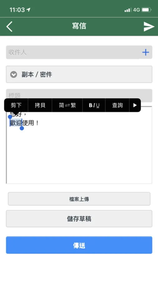 - 讀信時,可在手機中輕鬆完成信件轉寄、刪除、標記、搬移等功能。