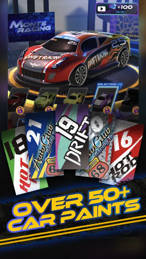 Take to the racetrack with a fancy and cool stock car designed by Golden Wheel, a toy car manufacturer in the world. Every vehicle has different performance in speed, horsepower, and power-up turbo. Unlock and upgrade them, you can drive like a boss.
