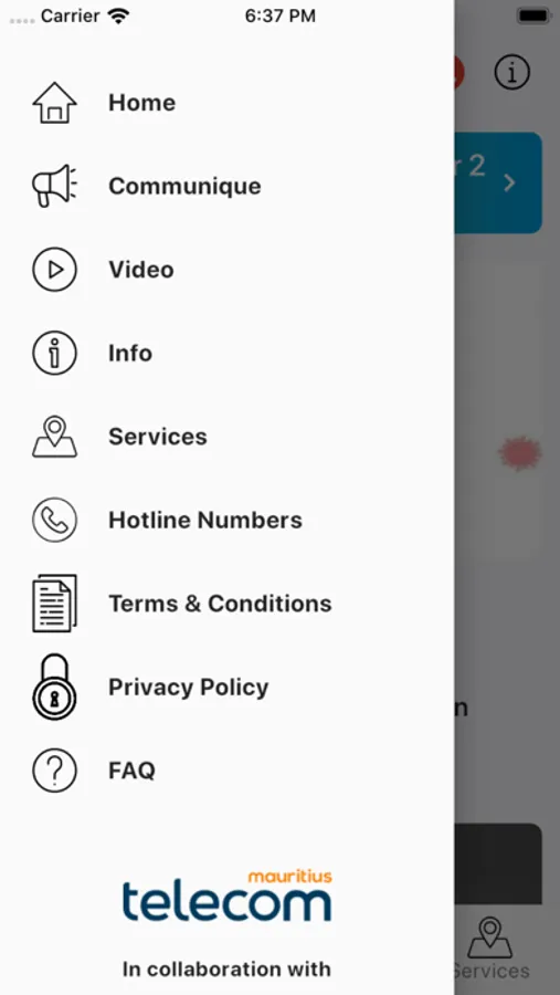 The Ministry of Health and Wellness is responsible for all content published in the application and Mauritius Telecom shall not be held responsible for the accuracy and validity of contents appearing on beSafeMoris.