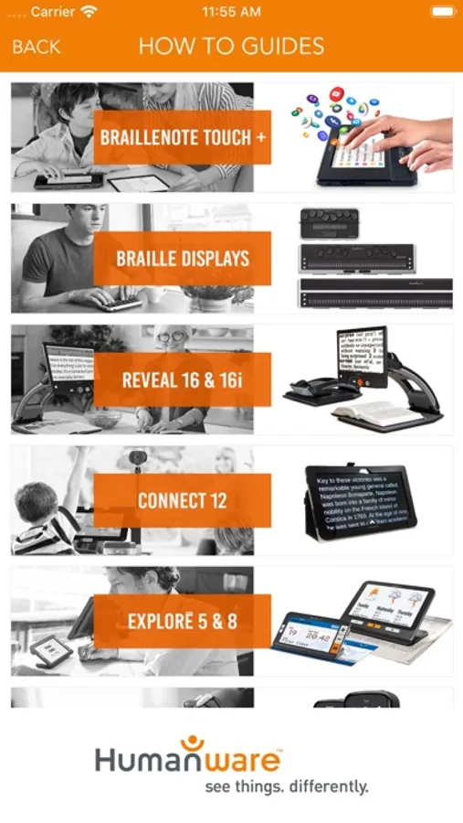 • Become proficient in using HumanWares products with simple to read step by step guides.