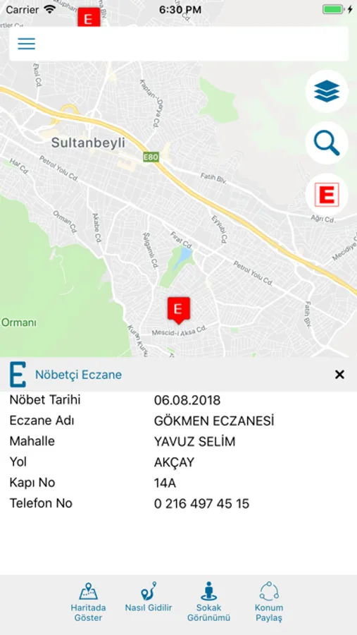 Sultanbeyli’deki eczaneler, hastaneler, okullar, camiler vb. bilgileri sorgulayabilir ve yol tarifi alabilirsiniz.