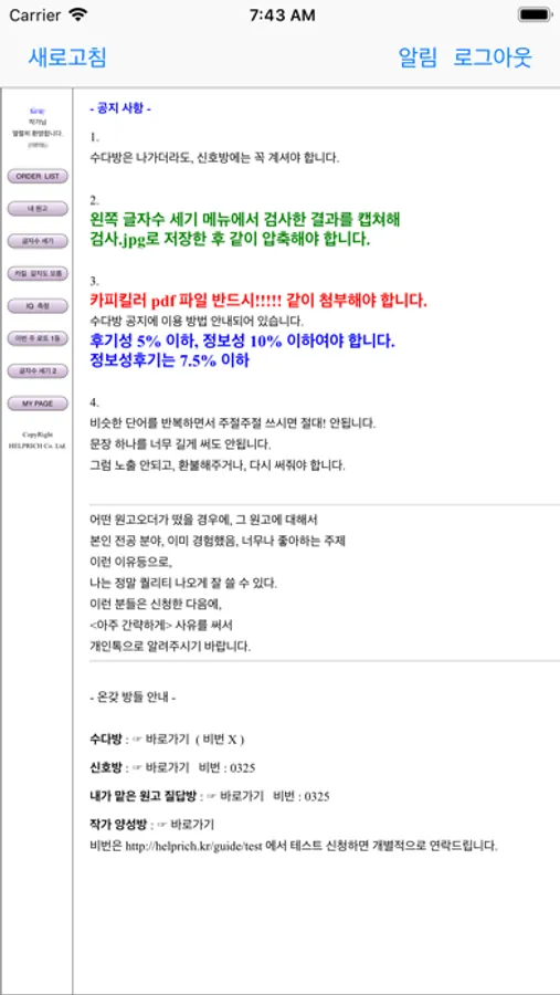 헬프리치 for 작가 에서는 다음과 같은 상황에서 알림을 발송합니다.