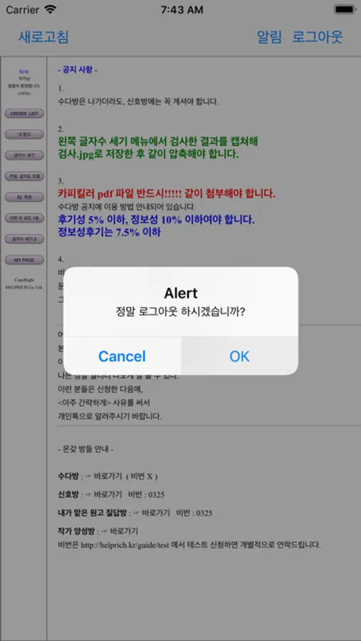 헬프리치에서 사용하고 있는 번호를 입력시, 로그인하실 수 있습니다.