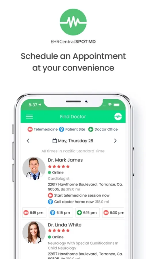 Spot MD patient app enables users to schedule a doctor appointment online in only a few taps on their smartphones once the profile is set up. This app ensures to preserve privacy of each user by hiding the irrelevant data from providers and other users.