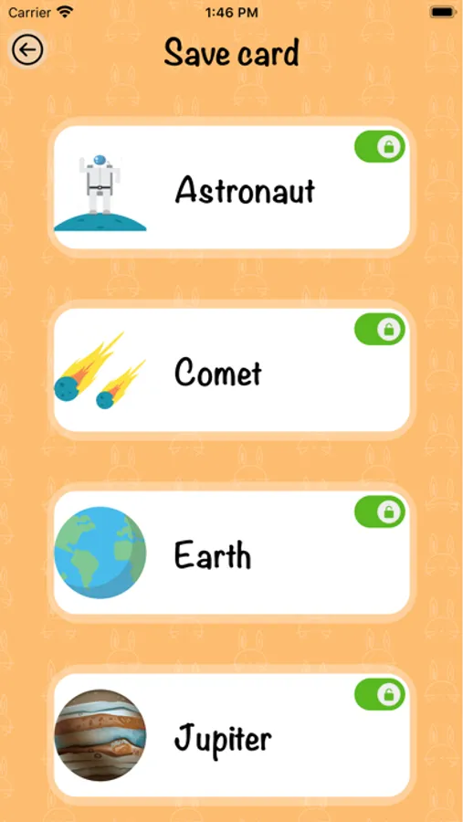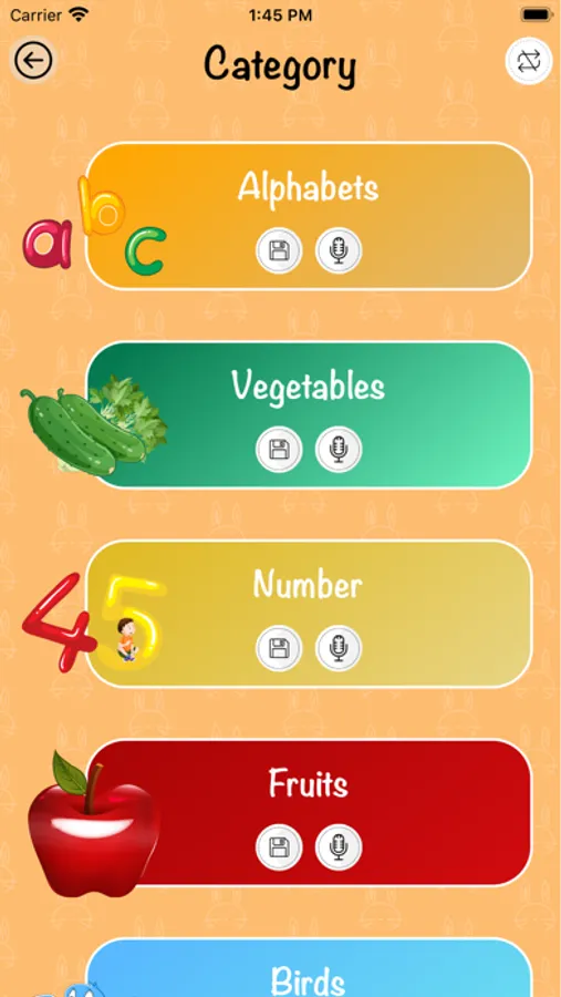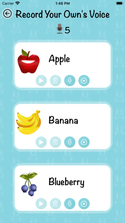 The FlashCards app provides such good features to speak the words and set own voice for your Kid by which he/she can recognize and happy to listen to his/her parent's voice.