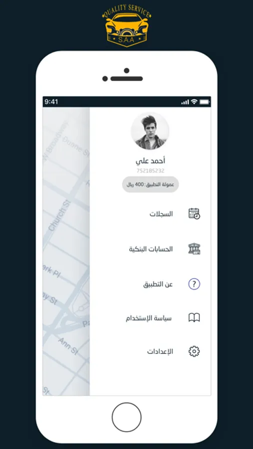 تطبيق سائق saa للسطحات يمكنك من خلال التطبيق التسجيل والعمل في فريق Ssa للسيارات يتم اولا طلب سطحة من خلال العملاء في محتلف الاماكن جول المملكة ثم يصل الطلب للسائق للذاهب لمكان العميل