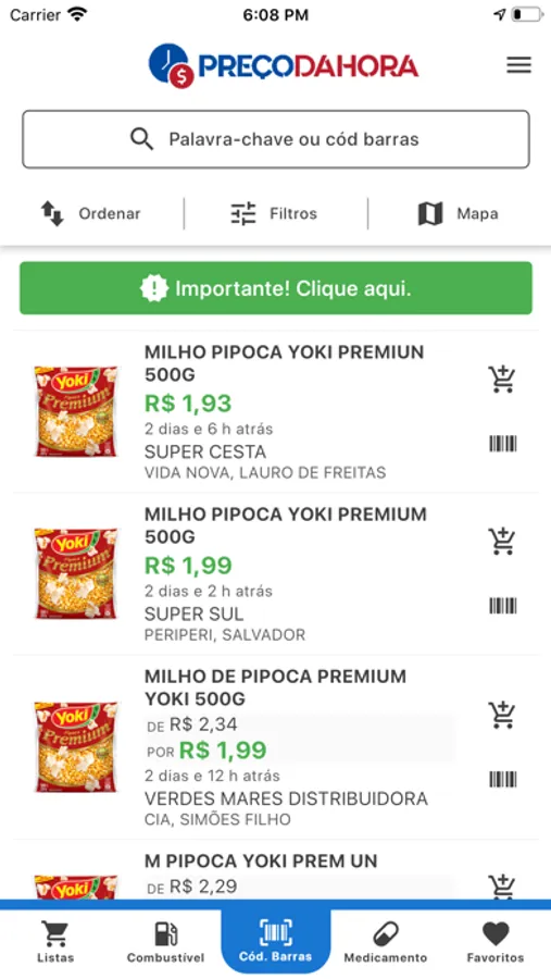 - Pesquise Produtos pelo nome, marca, ou código de barras.