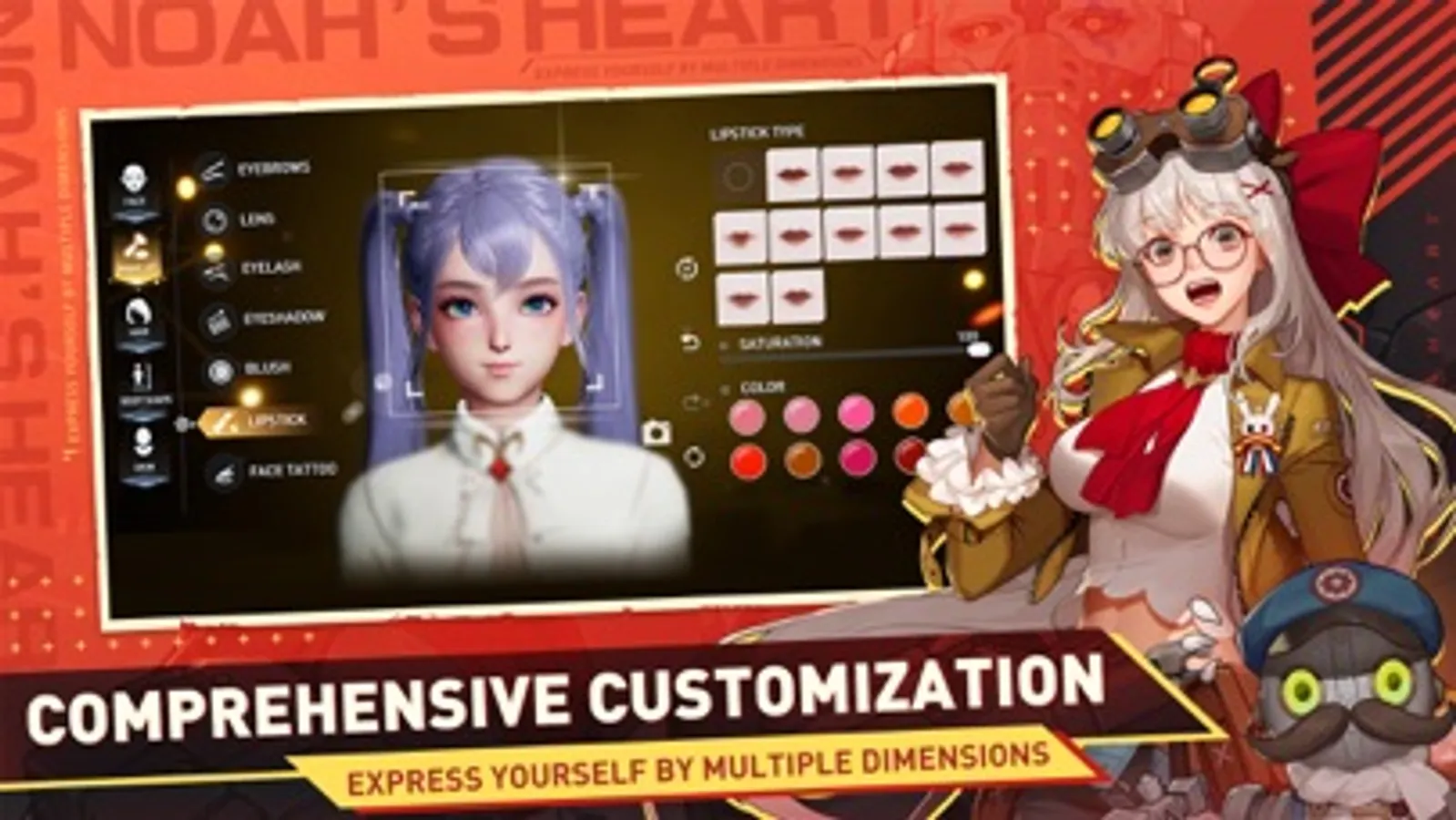Create and show off your unique style. Express your personality with the powerful customization system. Everything from body shape, skin tone, hair, eyes, lips, clothing, and many more, you are the one in charge! Choose from a diverse range of classical, modern, and exotic clothing styles to make yourself stand out on the planet of Noah.