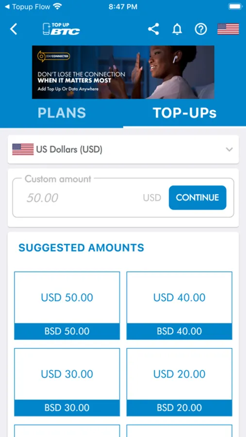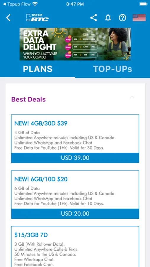 Top up any Flow number in a new and simple way. You will be able to Top up an amount or select a plan as you wish.