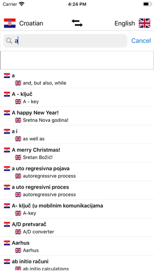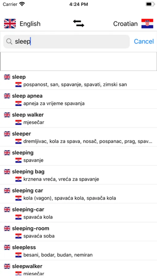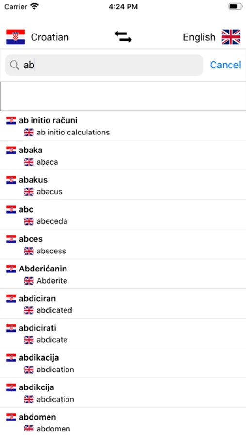- Search from Croatian words and from English words