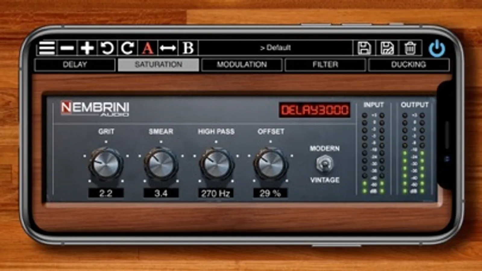 The DELAY3000 Vintage Modern Repeater plugin has two separate custom tuned saturation circuits: