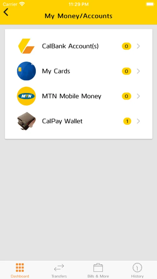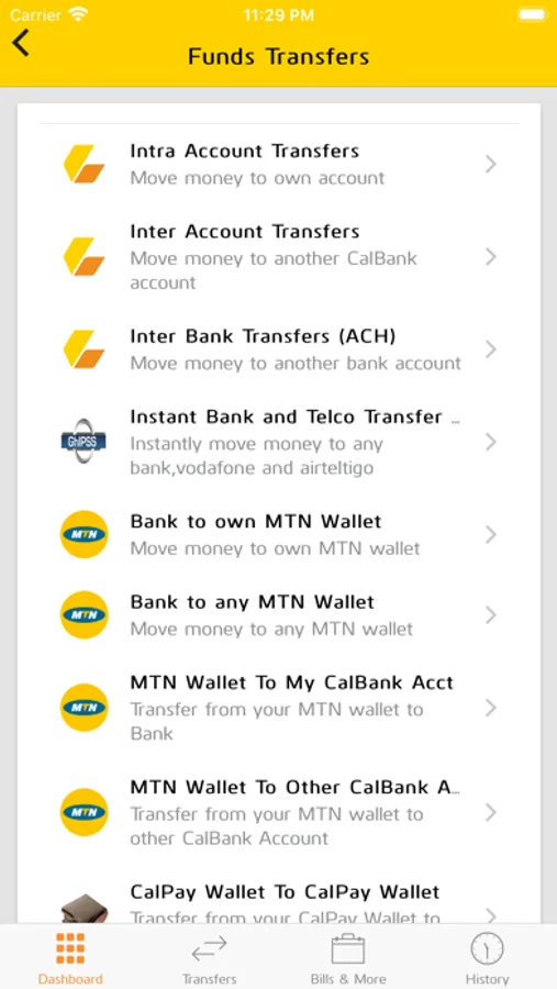 29.Link any VISA OR MASTERCARD, MTN mobile money number and CalBank accounts