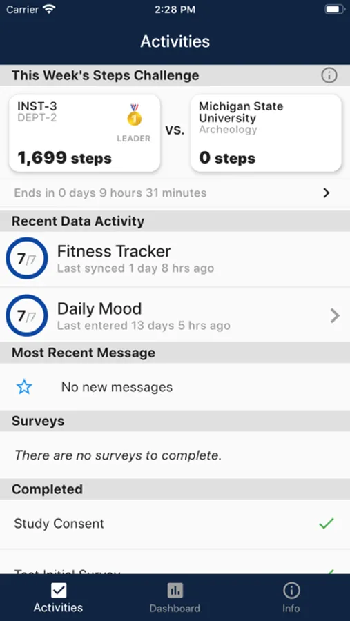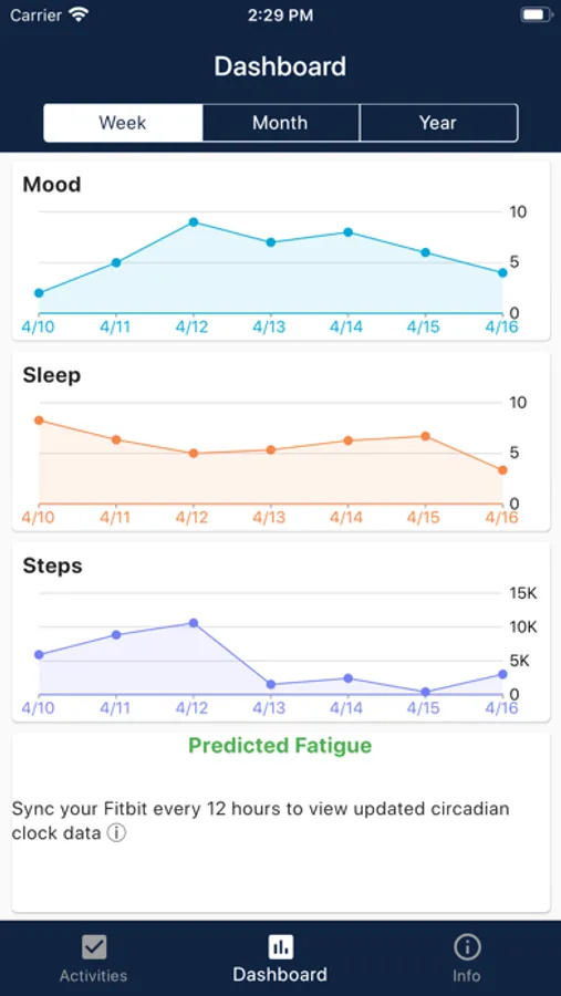 FITBIT: Some participants will wear a Fitbit Charge 2 for the purpose of measuring daily activity and sleep. Steps, sleep, and mood data for the past week will display on the app Dashboard screen.