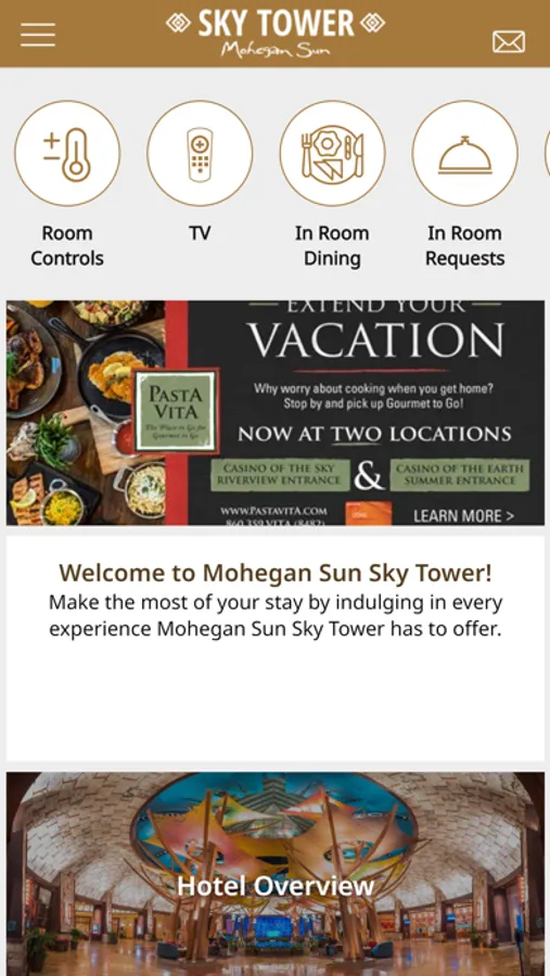 This is the In-Room tablet for the Mohegan Sun Sky Tower Hotel and is used with guests currently visiting the property.