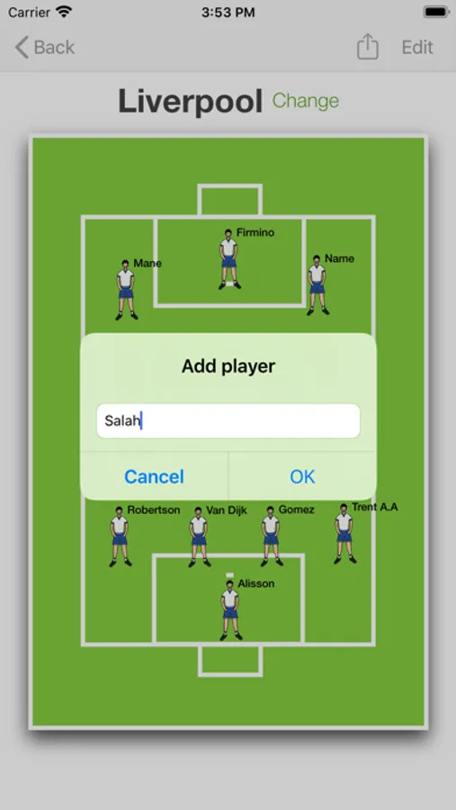 You can then create your own team lineup. Put players in the different positions in the defense, midfield and in the attack.