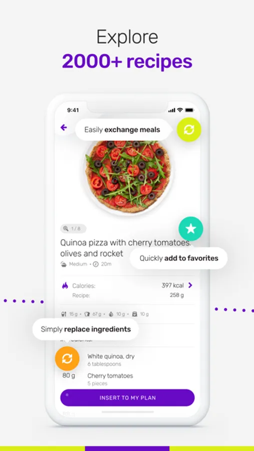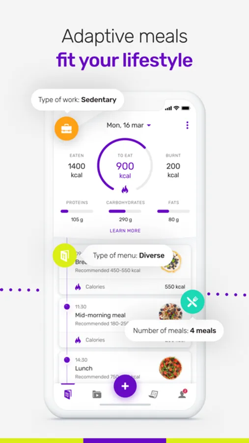 Start personalized & effective diets: Choose from Comfortable, Active, Gluten-Free, Immune-boost or Vegetarian diet plans. You can adapt and modify as you go along, according to your preferences.