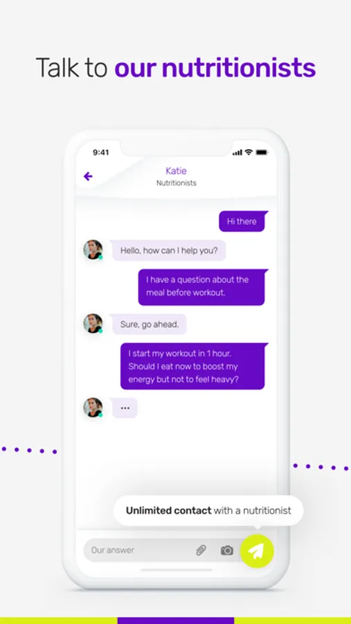 Meet your new nutrition coach: Get unlimited help and advice from specialists, including: clinical and sports nutrition experts.