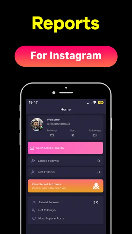 Ireports+ is an analytics tool specially designed for your Social profile. In this application, you can follow your followers, see your story analysis and detect those who do not follow you.