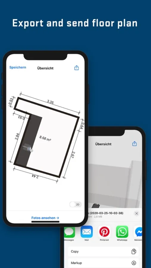 EasyRoom guides you step by step through the measuring procedure of the floor plan, doors and windows, connections and all further important elements. You can insert pictures and notes. In the end, you have collected all important information that a professional kitchen designer needs.