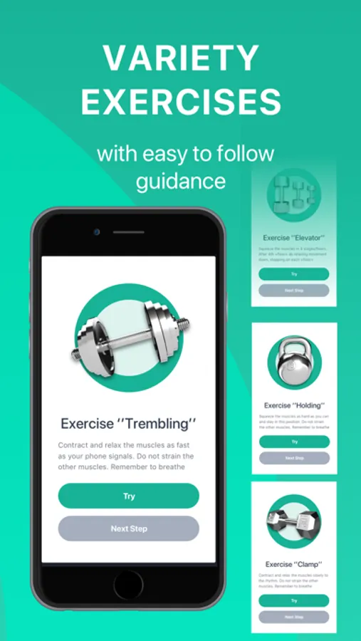 - Simple and understandable exercises with visual, text and vibro instructions
