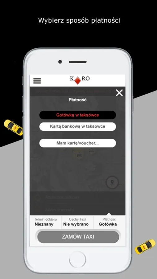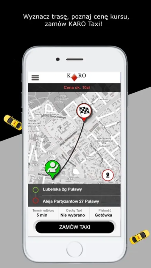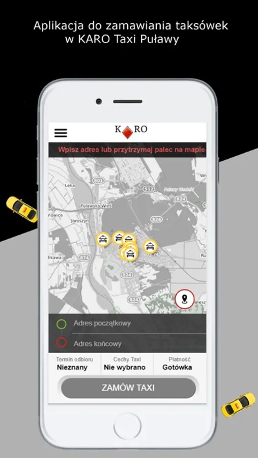 Bezpłatna aplikacja służąca do zamówienia taksówki KARO w Puławach.