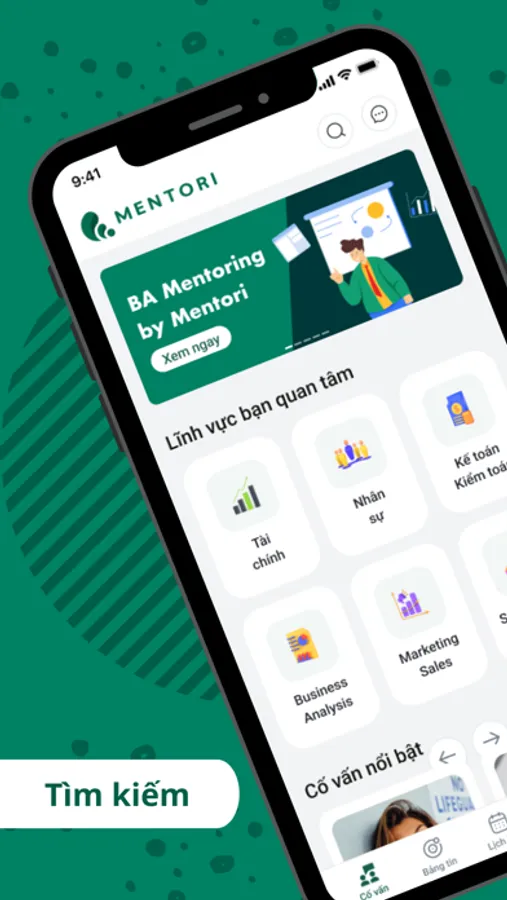 - Tìm cố vấn: Mentori cho phép bạn tìm cố vấn phù hợp theo chủ đề mong muốn. Với hơn 200 cố vấn có trình độ chuyên môn và kinh nghiệm đa dạng, chắc chắn bạn sẽ tìm được một người cố vấn phù hợp.
