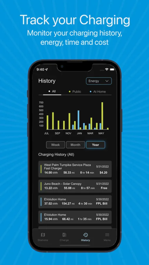 Create a user profile: See your charging history and trends, including miles added and cost.