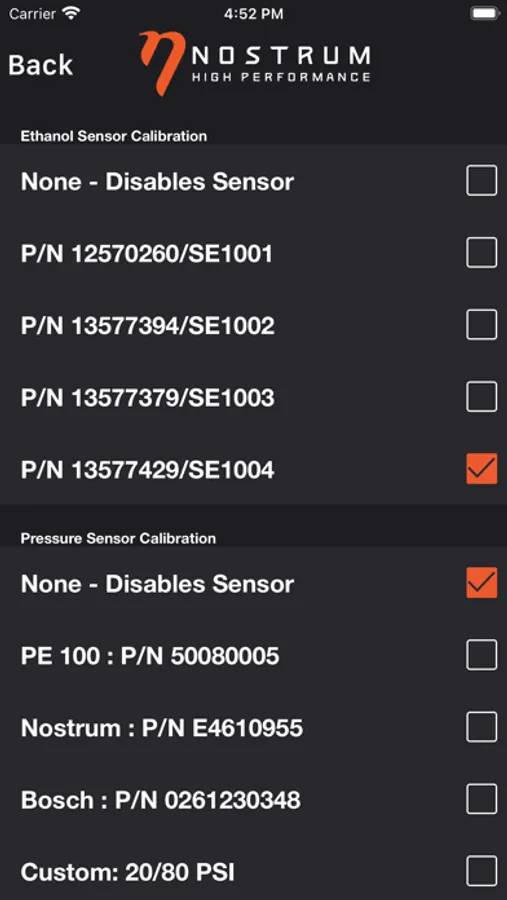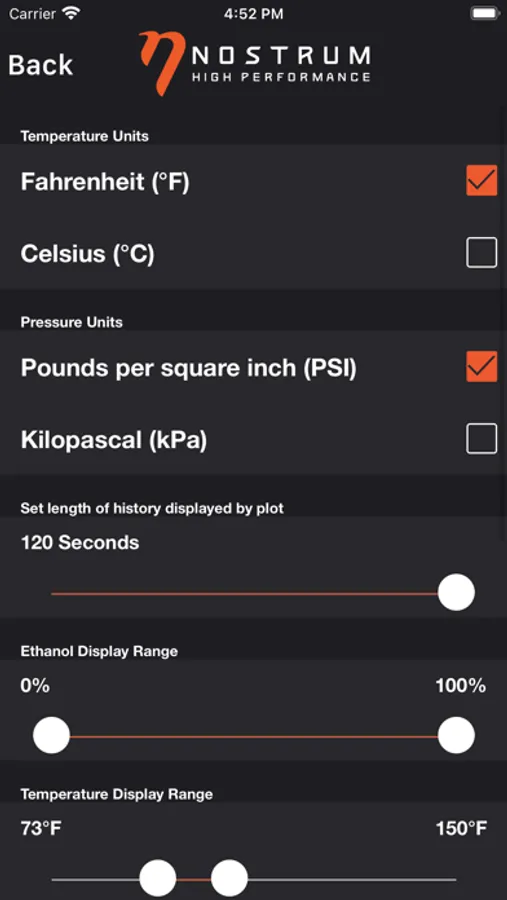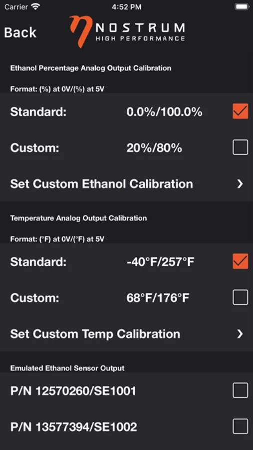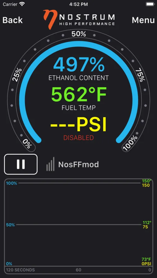 The Nostrum E85 Ethanol Module App works directly with Nostrum’s E85 interface module* and enables you to monitor your vehicle’s ethanol content, fuel temperature, and fuel pressure** directly from your wireless device.