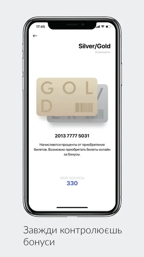 - Реєструй у додатку бонусну картку, та отримуй кешбек за придбання кожного білету;