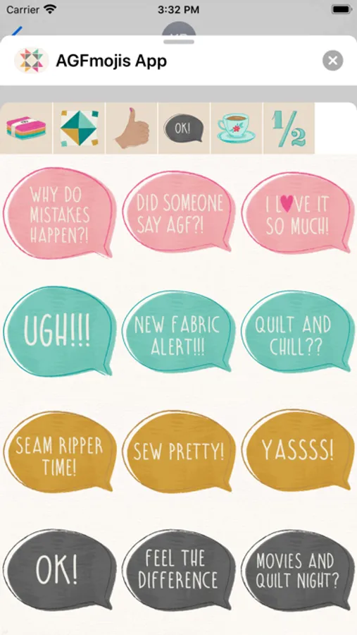 The next time you’re texting your friends, you can express all your emotions with our latest AGFmojis. From catchy phrases to sewing and quilting motifs, there are plenty of stickers to choose from.