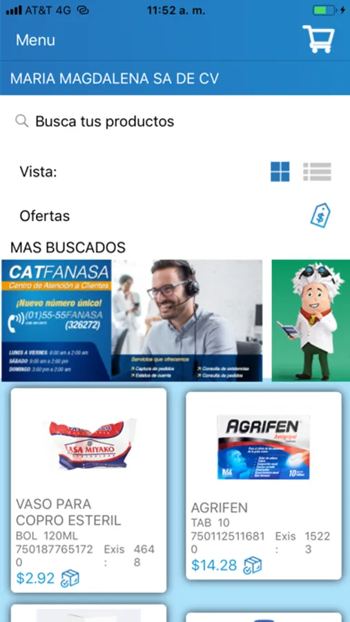 Visualiza productos sugeridos, los más comprados y con oferta.