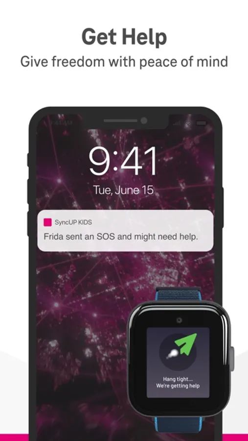 • Have comfort knowing that your child can alert their designated emergency contacts with the touch of the Help button, or reach 911