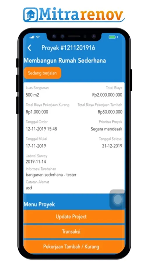 Mitrarenov merupakan kontaktor jasa renovasi bangun rumah, ruko, kantor dan gedung yang berpengalaman dan terpercaya. Di Mitrarenov, anda dapat memonitoring progress pekerjaan secara online sehingga memudahkan anda untuk melihat perkembangan progress perkerjaan anda dimana pun dan kapan pun. Selain itu, Mitrarenov juga menyediakan RAB sehingga anda tidak perlu takut dengan overbudget dalam membangun rumah