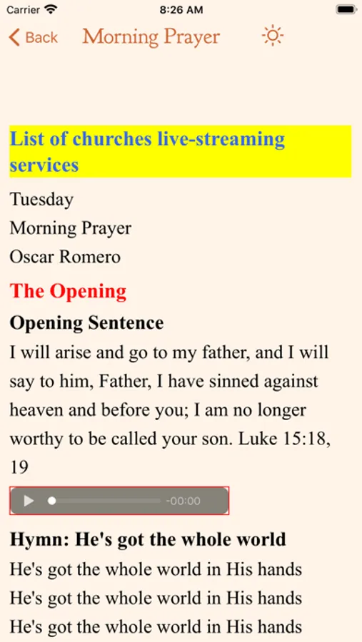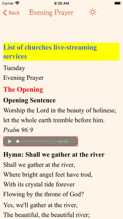 Offers Daily Morning and Evening Prayer from The Book of Common Prayer (BCP) in English and in Spanish. You may also select yesterday's prayers or tomorrow's prayers.