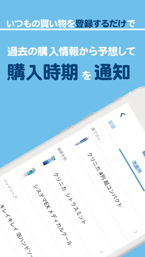 購入履歴を入力するだけであなたに合ったタイミングで通知してくれます。また入力した購入履歴はいつでも確認できるため、どこのお店でいくらで買ったか確認できます。