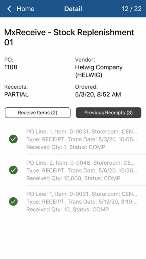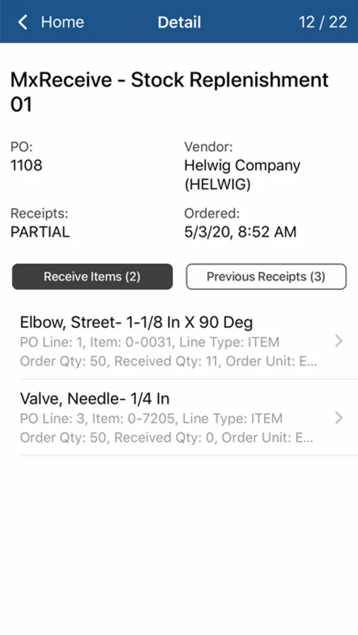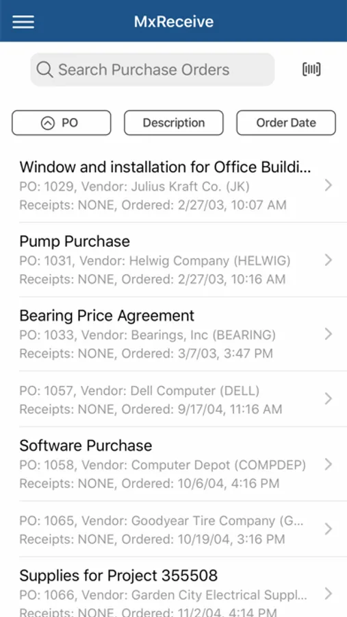 MxReceive by A3J Group, LLC is a mobile application for receiving parts and material from vendors within IBM Maximo Asset Management. Rather than capturing information on paper and transcribing the information into the system on a desktop computer, MxReceive allows users to receive parts and material right at the source. Users can scan item or purchase order barcodes or QR codes to locate records, receive immediate feedback if inspections are required, and receive material in Maximo in real-time from their devices. MxReceive makes receiving parts easy, which builds organizational trust in their data. All on the go, and all using the authorized IBM Maximo API's.