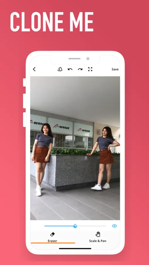 - Place the objects in first frame and second frame, app will auto make your final photo