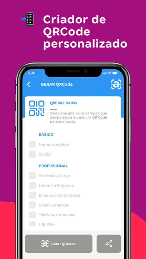 Você poderá gerar QRCodes exclusivos a partir de seus dados selecionados.