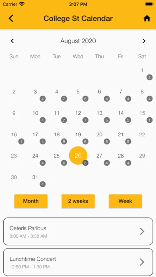 Events calendar for each campus