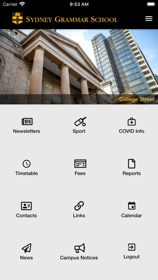 Sydney Grammar School mobile app for parents and wider school community.