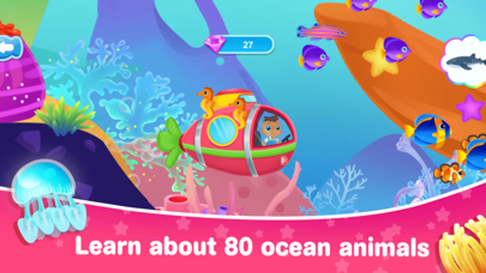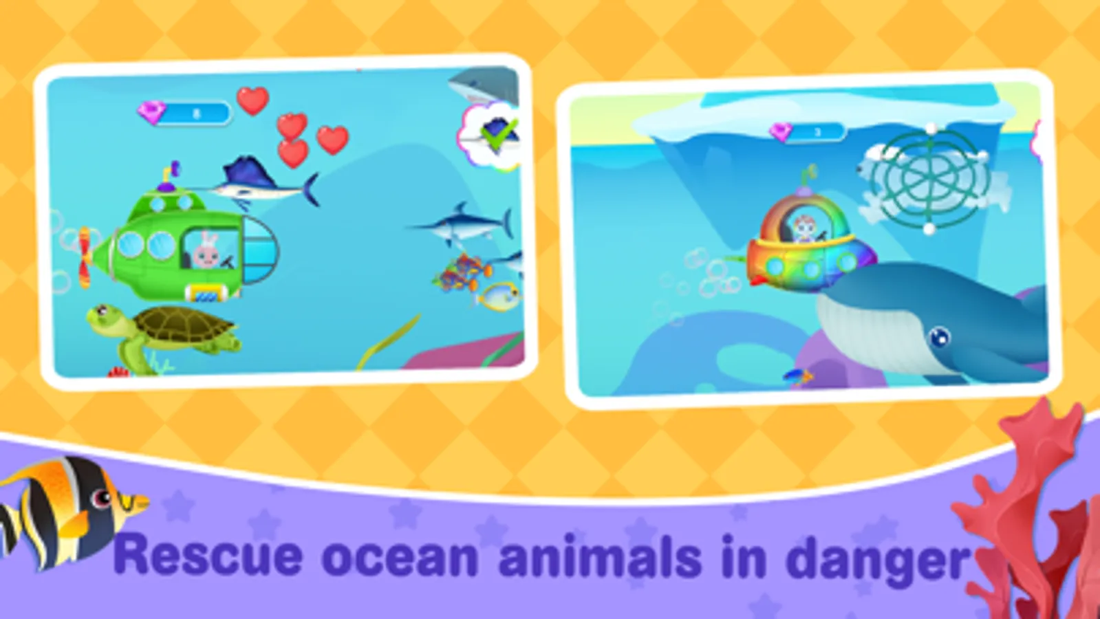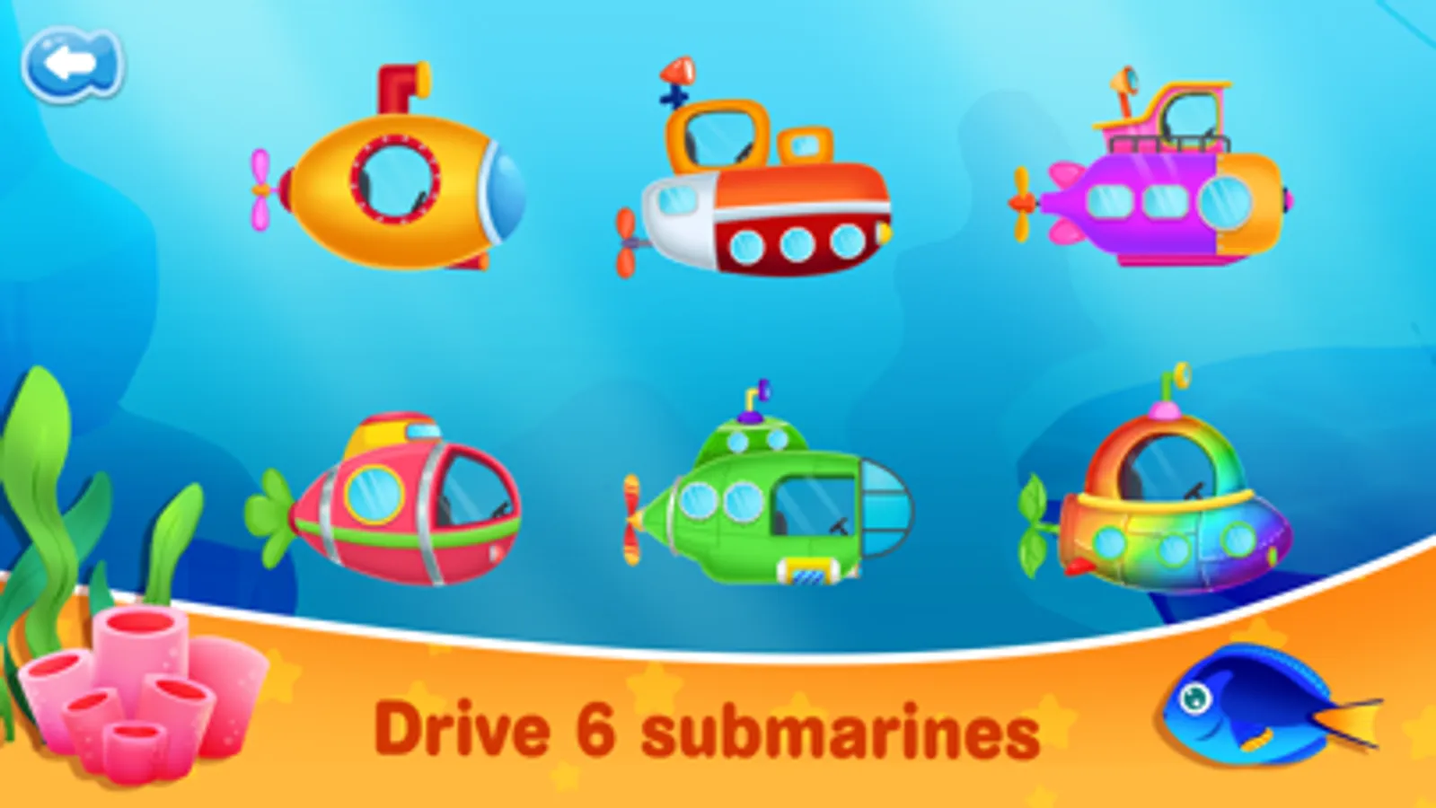 You can select your favourite submarine and captain, earn treasure by rescuing the trapped fish or ocean animals while exploring in a large map. With bright colors, and a lot of animations, these interactive activities will ignite your child's imagination and give them hours of active fun. Enjoy!
