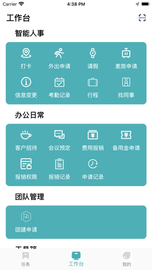 3,工作台:数字化的请假,报销,补卡等oa功能,全面实现移动办公,节省全球碳排放
