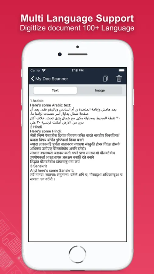 ● Multi-language support - OCR images in English, Spanish, French, German, Italian and more with support for over 60+ different languages