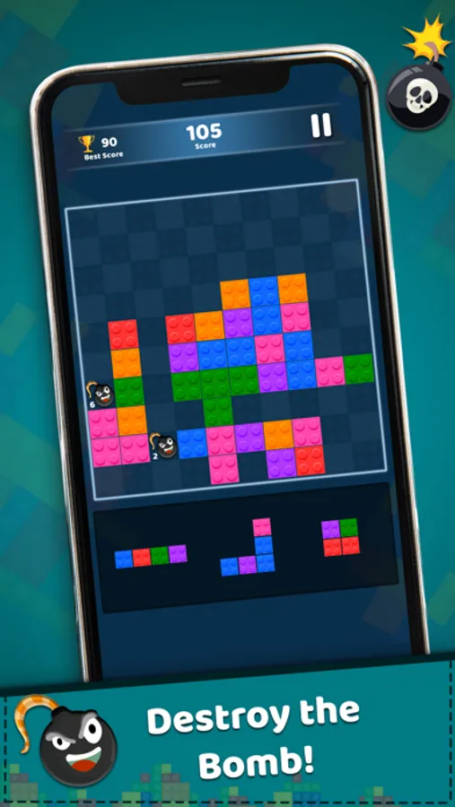 - Bomb mode: bombs pop-up regularly. Fill the bomb lines before it explodes