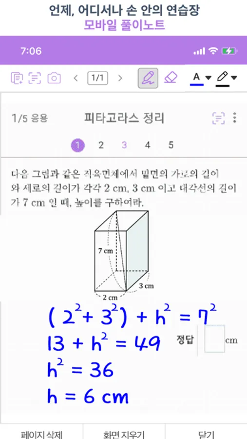 교사용 앱에서 담당 교사가 개설한 클래스에 가입하면 선생님이 내준 과제를 풀이할 수 있습니다. 풀이를 완료하면 담당 교사는 나의 풀이 과정과 진단 결과를 볼 수 있고, 그 결과를 참고하여 앞으로의 지도 방향 결정에 도움을 줍니다.